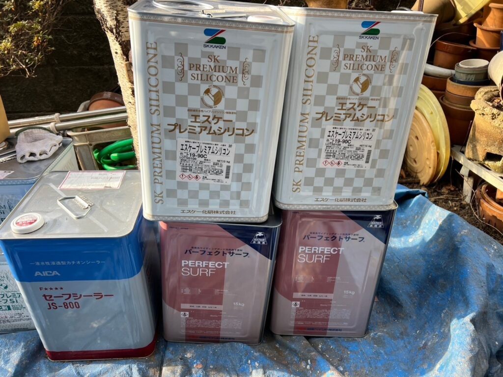 | 使用商材・建材 | 外壁 : エスケープレミアムシリコン(1液型水性/シリコン塗料/エスケー化研) 屋根:シリコンルーフSi(2液型弱溶剤/シリコン塗料/エスケー化研) 付帯部 : 4フッ化フッ素(液型弱溶剤/フッ素塗料) 開口部: オートンイクシード(超高耐久・高耐候シーリング材/オート化学工業) |