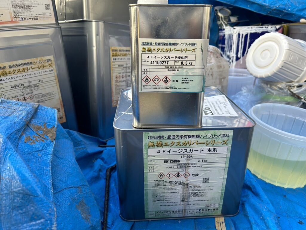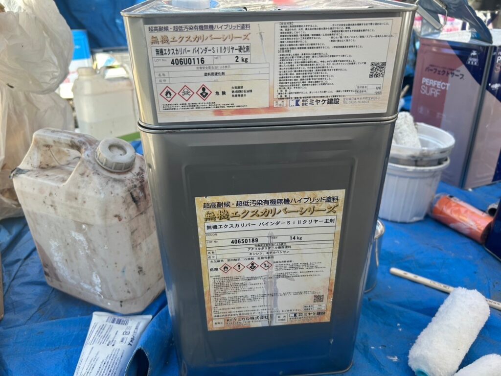 | 使用商材・建材 | 外壁 : エスケープレミアムシリコン(1液型水性/高耐久性シリコン塗料/エスケー化研) 屋根:無機エクスカリバーMZ-R(2液型弱溶剤/無機塗料/KFケミカル) 外壁クリヤー部分:無機エクスカリバーMZクリヤー(2液型溶剤/超耐久無機塗料/KFケミカル) 付帯部 : 4フッ化フッ素(液型弱溶剤/フッ素塗料) 目地&開口部: オートンイクシード(超高耐久・高耐候シーリング材/オート化学工業) |