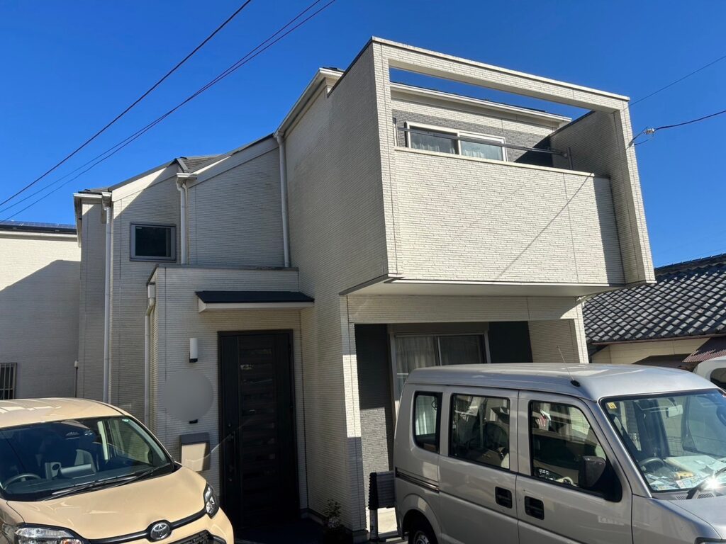 | 使用商材・建材 | 外壁:ダイヤスーパーセランフレックス(2液型水性/無機塗料/シーカジャパン) 外壁:無機エクスカリバーAZ-W(2液型水性/無機塗料/KFケミカル) 屋根 : 無機エクスカリバーMZ-R(2液型弱溶剤/無機塗料/KFケミカル) 付帯 : 4フッ化フッ素(2液型弱溶剤/フッ素塗料) 目地/開口部 : オートンイクシード(超高耐久・高耐候シーリング材/オート化学工業) |