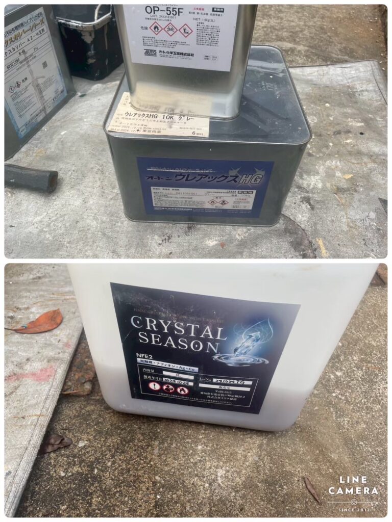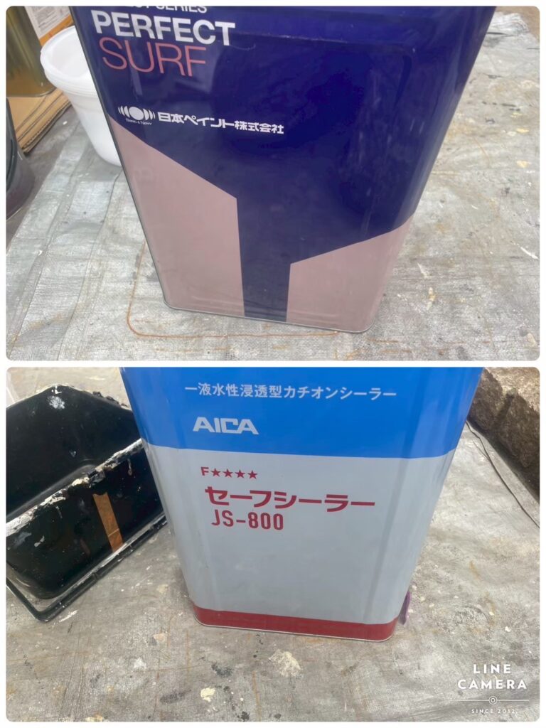 | 使用商材・建材 | 外壁:ダイヤスーパーセランフレックス(2液型水性/超低汚染無機塗料/シーカジャパン) 外壁:無機エクスカリバーAZ-W(2液型水性/超低汚染無機塗料/KFケミカル) 屋根 : スーパーガルテクト(ガルバリウム鋼板カバー工法/アイジー工業) 付帯 : 4フッ化フッ素(2液型弱溶剤/フッ素塗料) 開口部 : オートンイクシード(超高耐久・高耐候シーリング材/オート化学工業) |