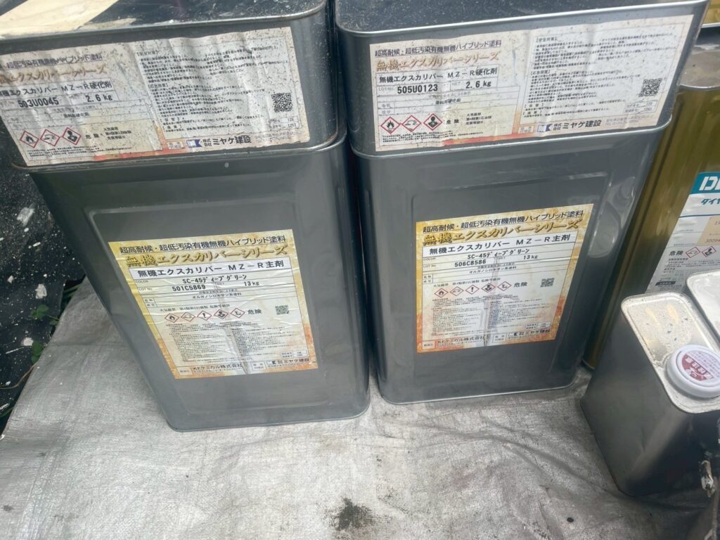 | 使用商材・建材 | 外壁:ダイヤスーパーセランフレックス(2液型水性/超低汚染無機塗料/シーカジャパン) 屋根 : 無機エクスカリバーMZ-R(2液型弱溶剤/無機塗料/KFケミカル) 付帯 : 4フッ化フッ素(2液型弱溶剤/フッ素塗料) 開口部 : オートンイクシード(超高耐久・高耐候シーリング材/オート化学工業) |